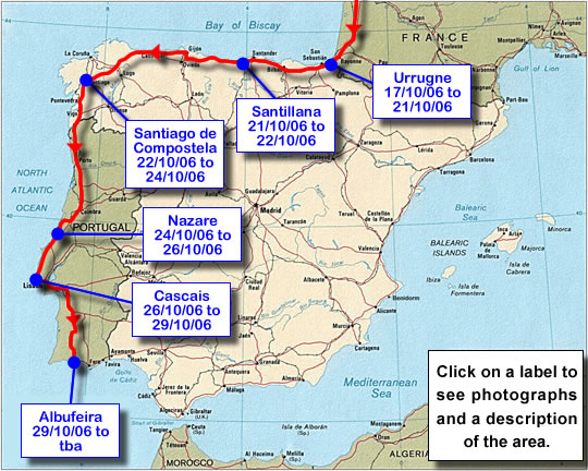 Here is an interactive map of the route we have taken. Click on a label to be taken to a summary page and photos of the area. There are two sections, Europe trip one (December 2005 to October 2006) and Europe trip two (the one we are currently on). Europe